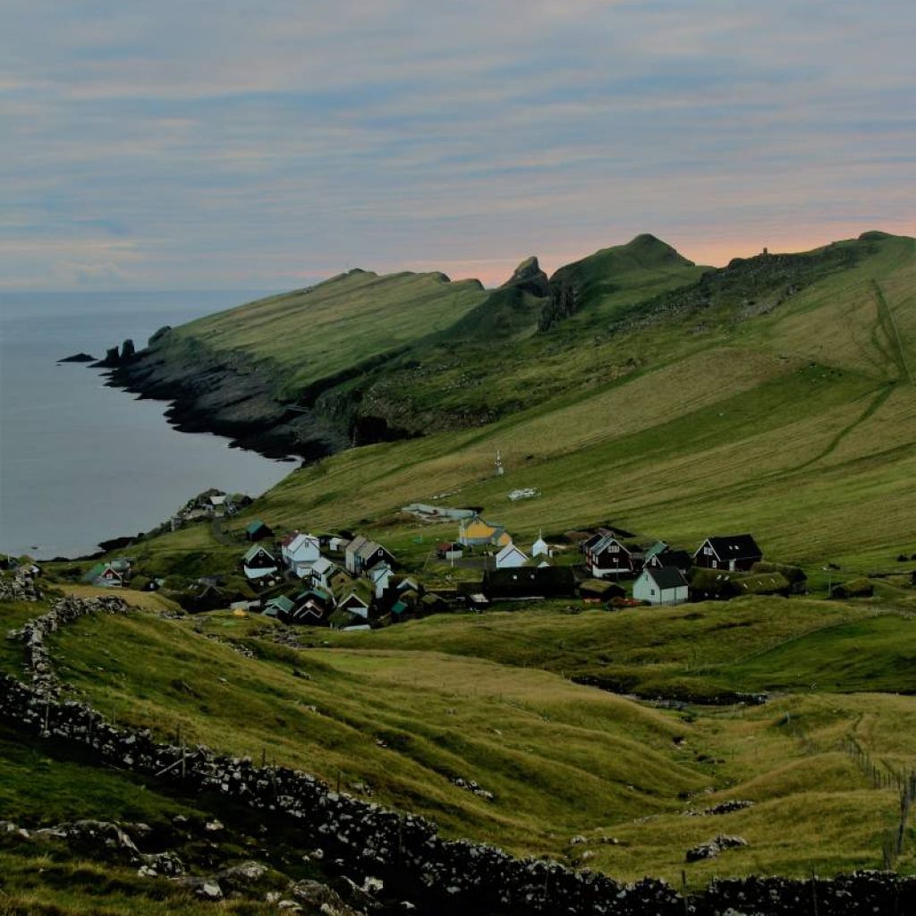 On y accède en bateau (http://mykines.fo/) ou en hélicoptère (https://tyrla.atlantic.fo/). Il n’y a qu’un seul village d’une dizaine de maisons aux toits herbeux, un phare, des milliers de macareux, des moutons, un petit snack/ pension et des hectares de terrain pour camping sauvage. J’y ai posé ma tente sur un surplomb du village et j’ai profité!
